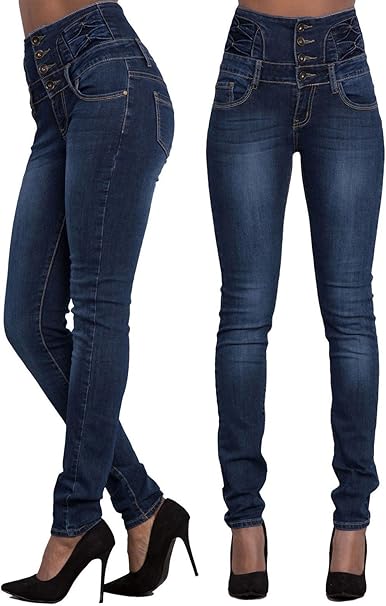 Aphrodite Damen Jeans Mit Hoher Taille Hohe Taille Skinny Damen Jeans Mit Kunst Fronttaschen Amazon De Bekleidung