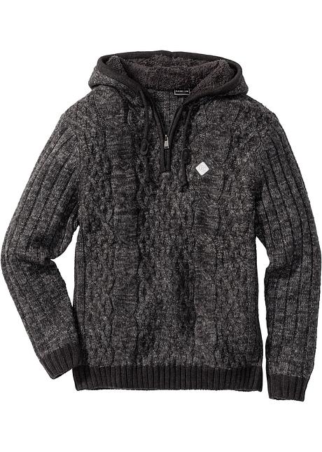 Schoner Strick Pullover Mit Teddyfell Kapuze Grau Meliert