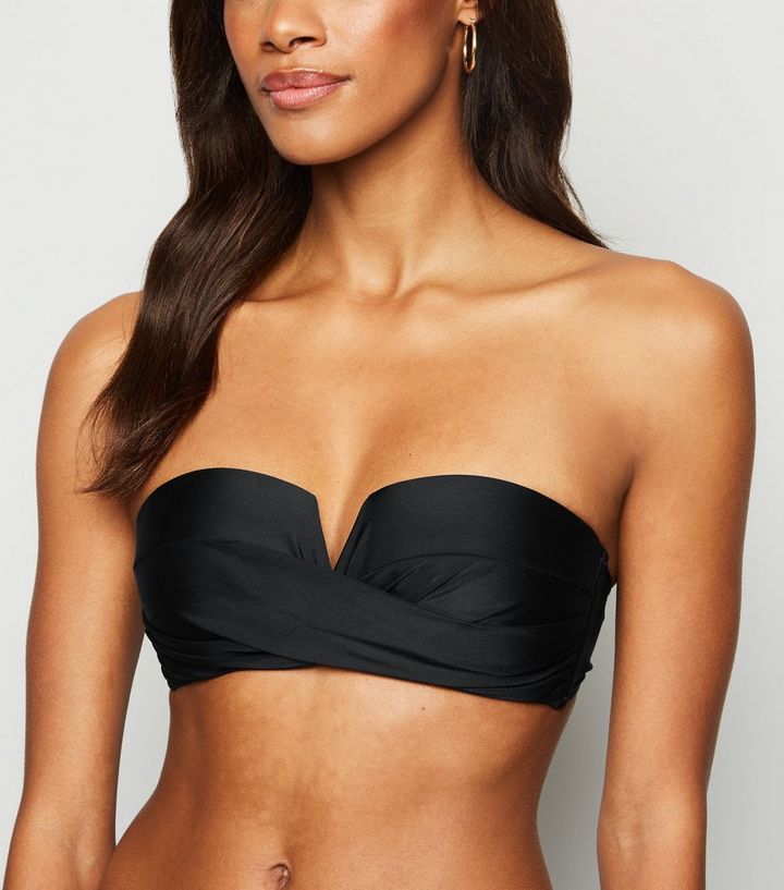 Black Notch Neck Wrap Bandeau Bikini Top New Look
