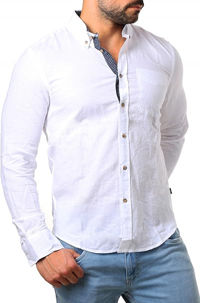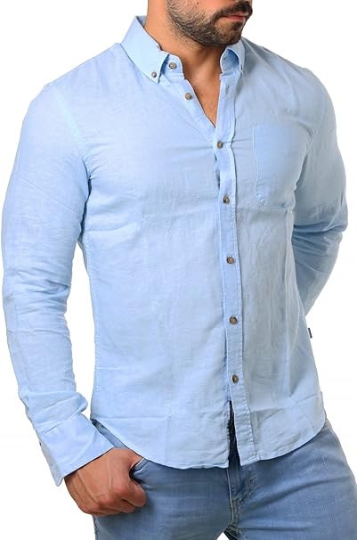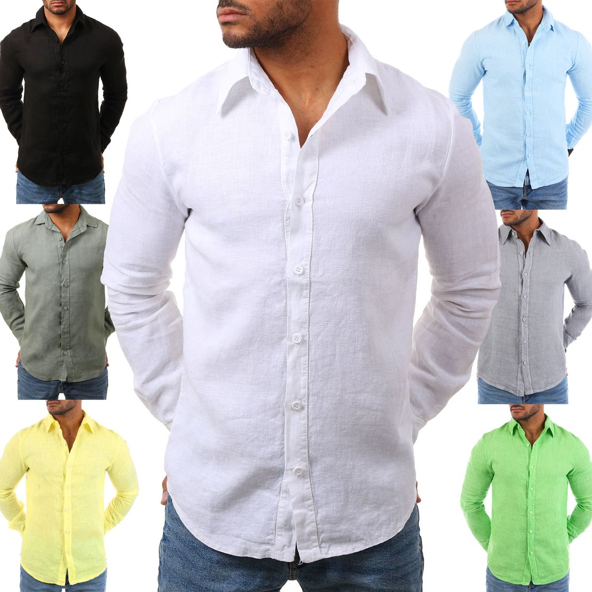 Young Rich Herren Manner Leinen Hemd Tailliert Korperbetont Langarm 100 Leinen