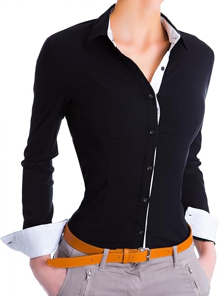 Damen Figurbetonte Langarm Bluse Business Hemd Tailliert 468 Farbe Schwarz Grosse X Large Amazon De Bekleidung