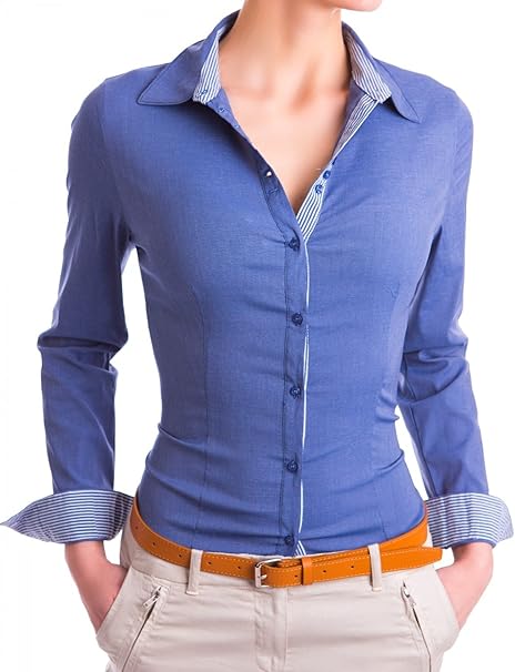 Damen Elegante Hemden Tailliert Figurbetonte Langarm Blusen Business 531 Farbe Dunkelblau Grosse Medium Amazon De Bekleidung