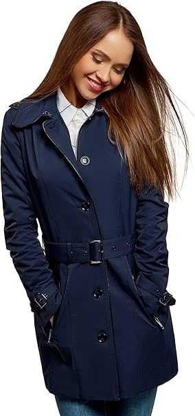 Oodji Collection Damen Einreihiger Trenchcoat Mit Kunstlederbesatz Blau De 44 Eu 46 Xxl Amazon De Bekleidung