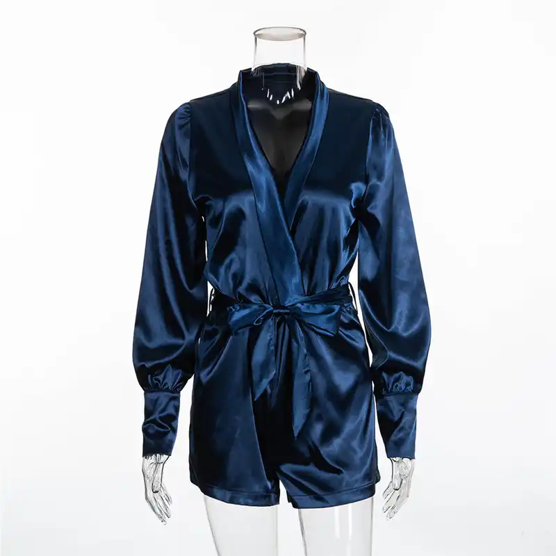 Gloss Silk Satin Bodysuits Jumpsuits 19 Sexy Deep V Neck Bodysuit With Sashes Long Sleeve Playsuit Women Solid Color Overalls Rompers Aliexpress