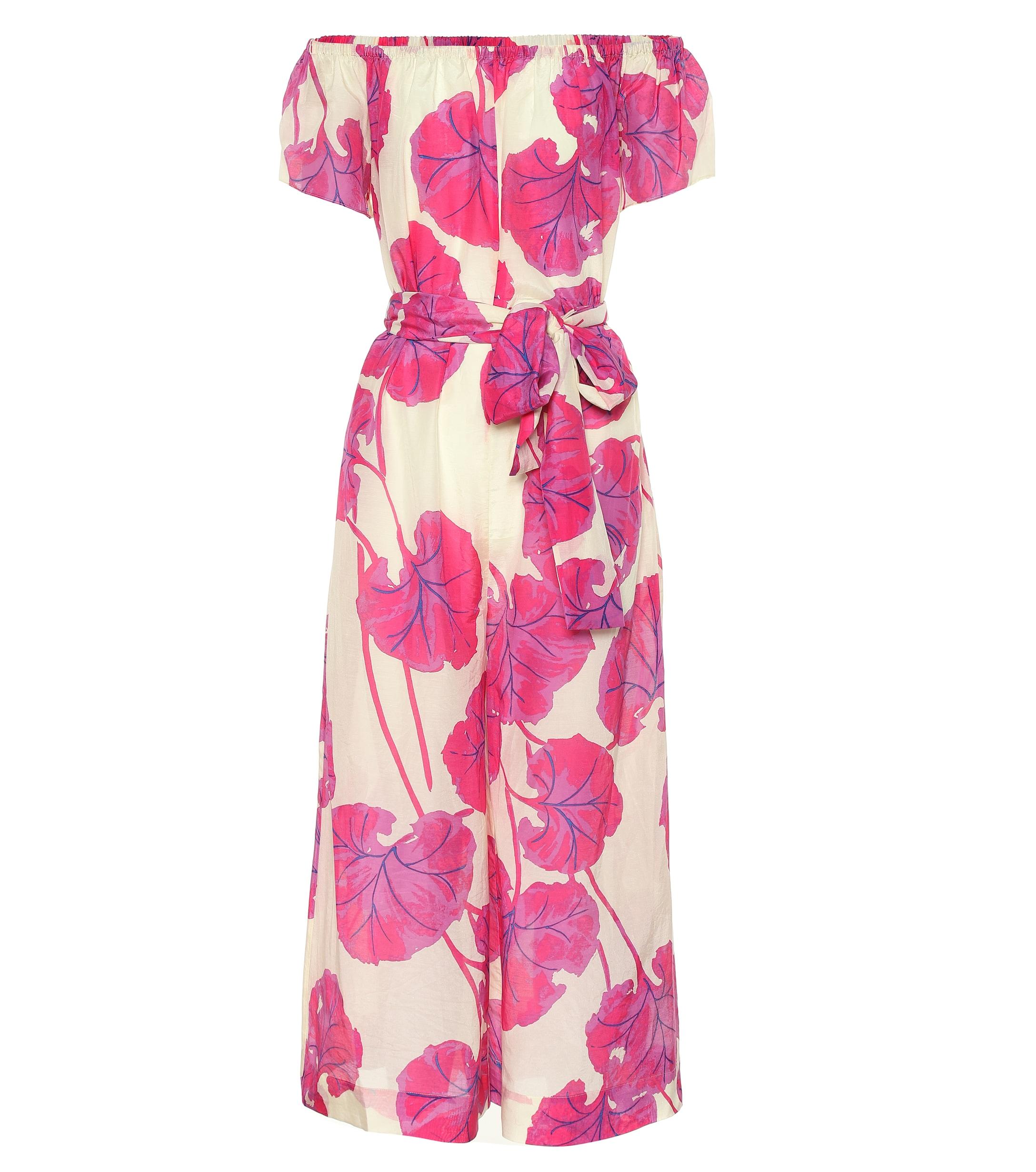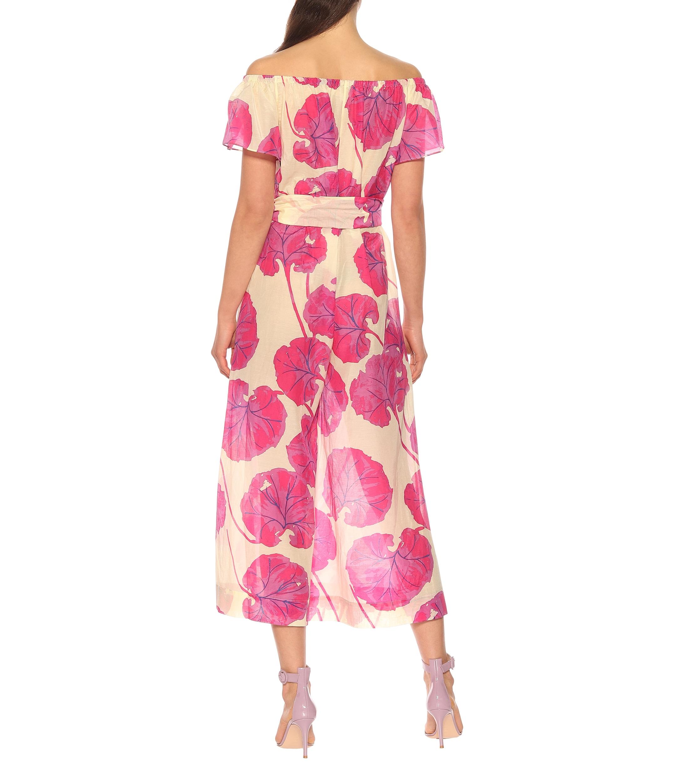 Diane Von Furstenberg Cotton Off Shoulder Floral Jumpsuit In Pink Lyst