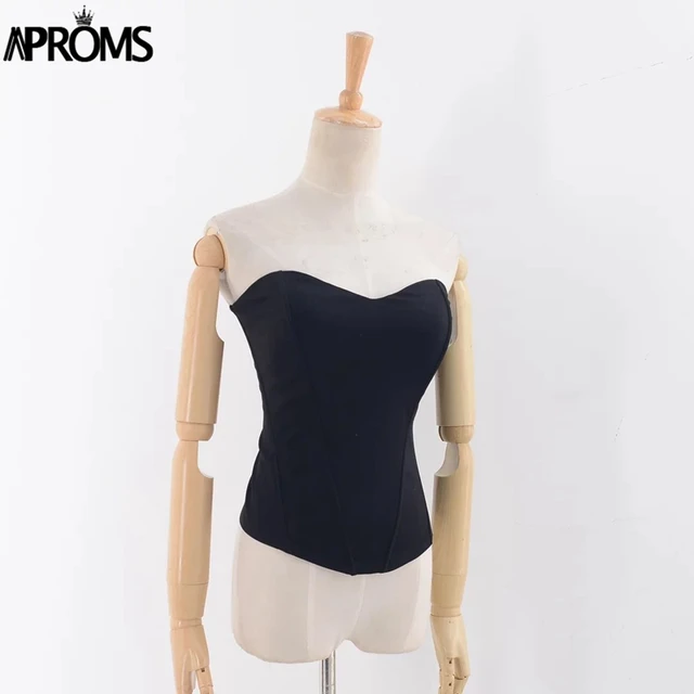 Aproms Black Strapless Slim Fit Tank Tops Elegant Party Off Shoulder Crop Top Christmas Cool Girls Streetwear Back Zipper Basic Tank Tops Aliexpress