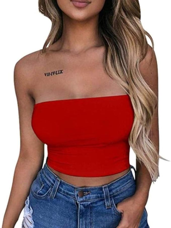 Dice Frauen Sommer Tragerlos Tube Crop Top Sexy Plain Einfarbig Bodycon Bandeau Ruckenfrei Mini Bustier Off Shoulder Nacht Clubwear Rot S Amazon De Bekleidung