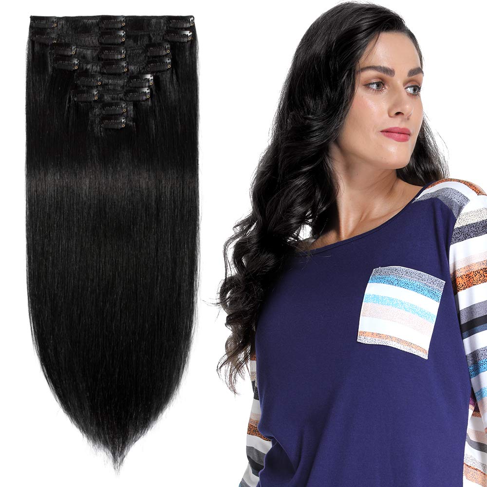 Extensions Echthaar Clip In Gunstig Remy Echthaar Haarverlangerung 8 Tressen 18 Clips Glatt 50cm 100g 1 Schwarz Amazon De Beauty