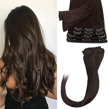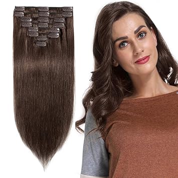 Clip In Extensions Echthaar Gunstig Weich Haarverlangerung Glatt Haarteil 8 Teilig 18 Clips Hochwertig Human Hair cm 45 Gramm 02 Dunkelbraun Amazon De Beauty