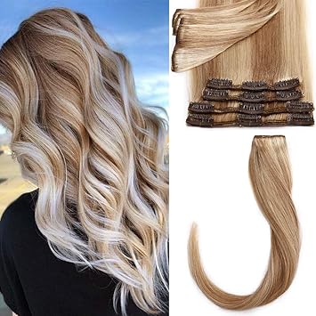 Clip In Extensions Echthaar Gunstig Haarverlangerung Remy Echthaar 8 Tressen 18 Clips Glatt 40cm 90g 12 613 Hellbraun Hell Lichtblond Amazon De Beauty