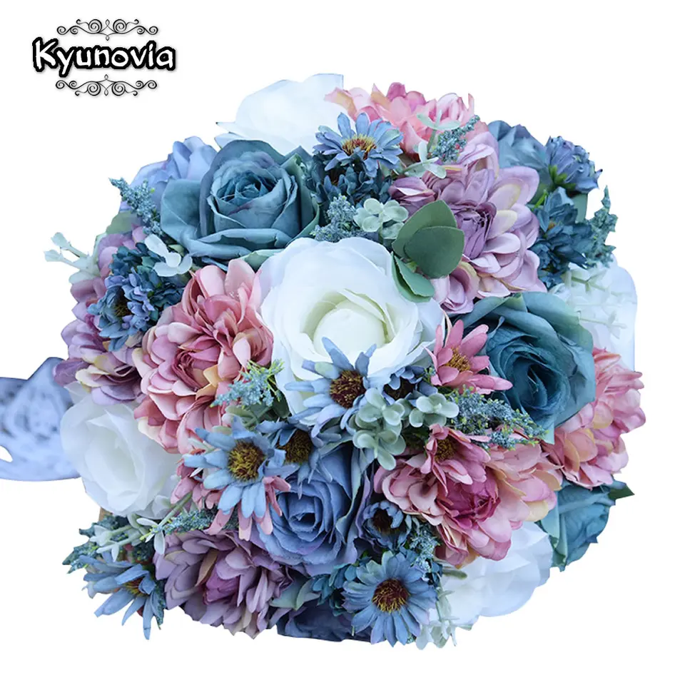 Kyunovia Vintage Blau Seide Wilden Blumen Blumenstrauss Fur Hochzeit Klar Farbe Brautstrauss Hochzeit Mittelstucke Dekoration Fe81 Bouquets Blue Bridal Silk Bouquetssilk Flower Wedding Bouquets Aliexpress