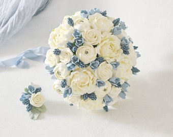 Blush Pink Wedding Bouquet Clay Flowers Succulent Bouquet Slate Blue Bridal Bouquet Alternative Keep Brautstrauss Braut Blumen Hochzeit Strauss