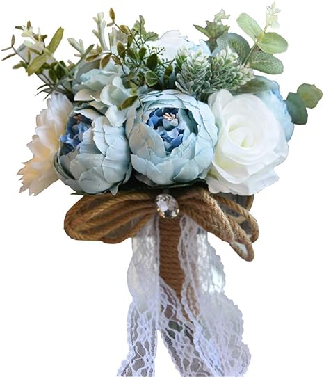 Amazon De Amyseller Vintage Kunstliche Mehrere Seidige Pfingstrosen Blumen Hochzeit Brautstrauss Heimdekoration Satin Blau 24x30cm