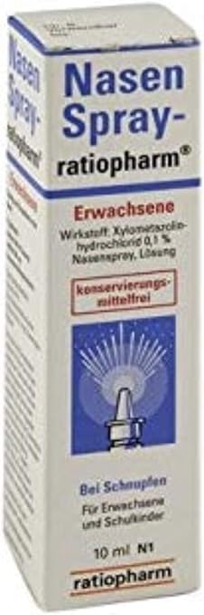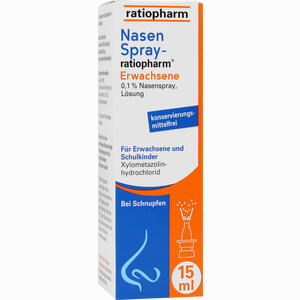 NasensprayRatiopharm 15 ml bezeichnet ein abschwellendes Nasenspray mit dem 0,1prozentigen Wirkstoff XylometazolinhydrochloridDas Arzneimittel von Ratiopharm eignet sich als Schnupfenspray für Erwachsene und Schulkinder ab sechs JahrenRatiopharm Nasenspray kommt bei allergischem Schnupfen, Nasennebenhöhlenentzündungen, Fließschnupfen beim Tubenmittelohr sowie zum kurzzeitigen. Eine hierdurch technisch bedingte Restmenge wird vom Sprühkopf nicht mehr erreicht;.