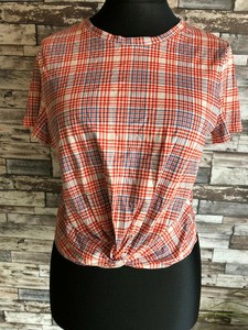 H M Shirt Crop Top Grosse L Kariert Rot Blau Weiss Mit Knoten Ebay