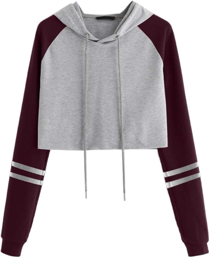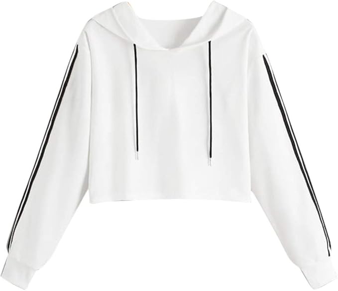 Geili Damen Madchen Bauchfreie Sweatshirt Mode Langarm Gestreift Hoodie Kurz Kapuzenpulli Langarmshirt Crop Tops Sportoberteile Streetwear Pullover Bluse Amazon De Bekleidung