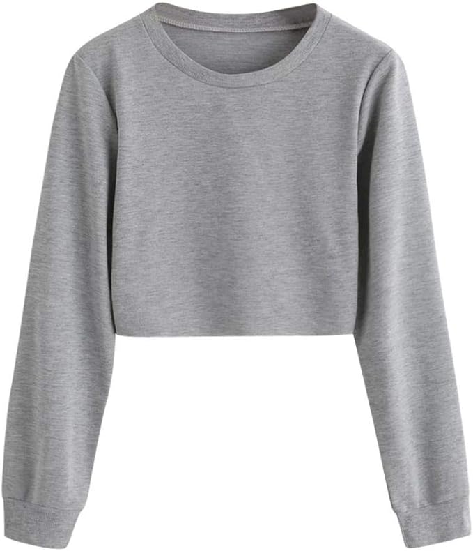 Geili Sweatshirt Damen Frauen Langarm Sweatshirt Damen Madchen O Ausschnitt Solid Color Pullover Crop Tops Bluse T Shirt Herbst Kurze Sportoberteile Amazon De Bekleidung
