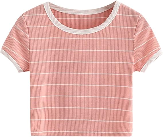 Pitashe Damen Tops Suss Kurzarm Bequem Streifen Drucken Damen Sommer T Shirt Crop Top Kurz Pullover Weste Tank Top Party Oberteile Bluse Camisole Hemd Bekleidung Vest Bauchfrei Tunika Clubwear Shirts Amazon De Uhren