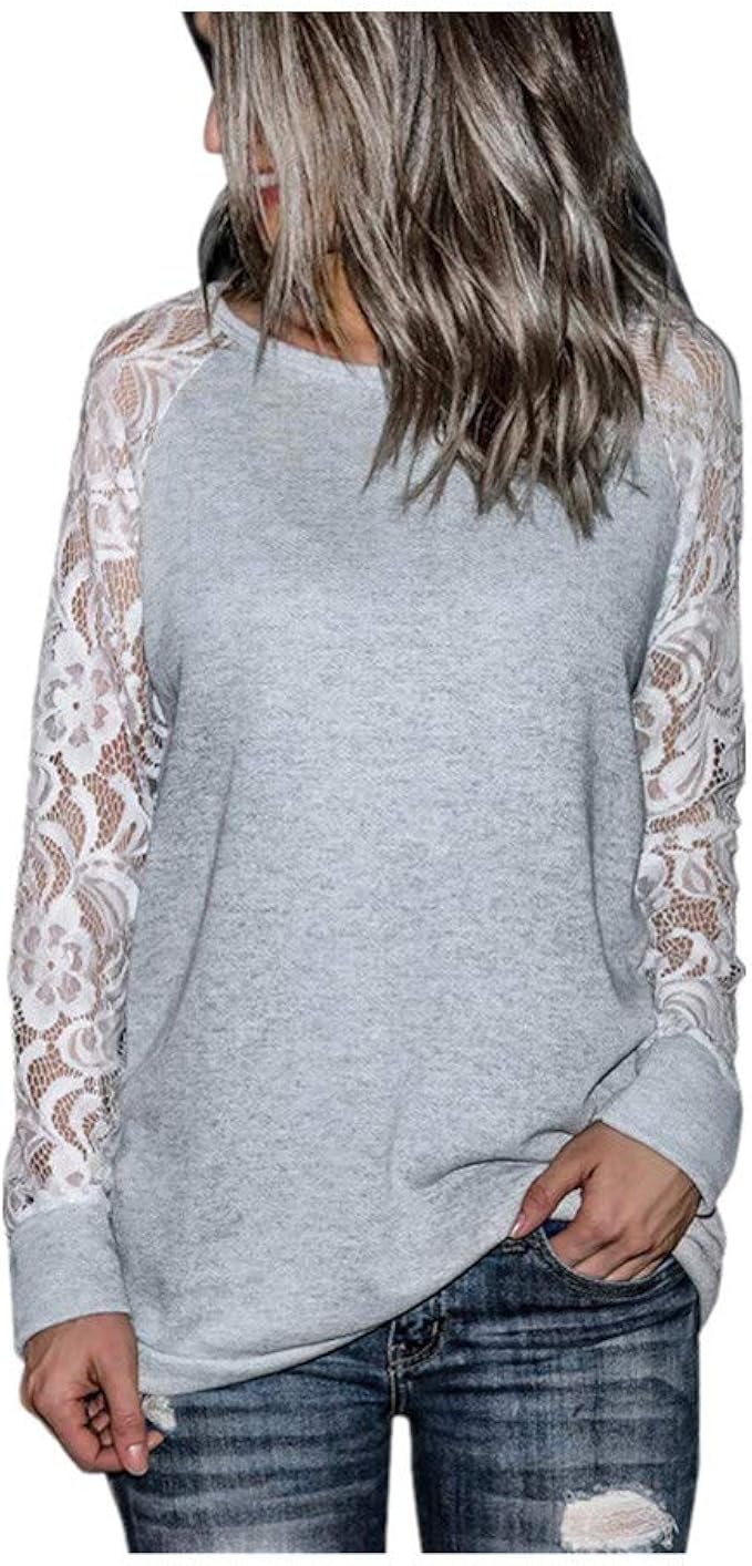 Auifor Arbeiten Sie Beilaufige Spitze Lange Hulsen Crop O Neck Pullover T Shirt Bluse Tops Amazon De Bekleidung