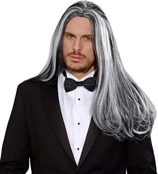 Schwarze Gothik Vampir Langhaar Perucke Mit Grauen Strahnen Fur Herren