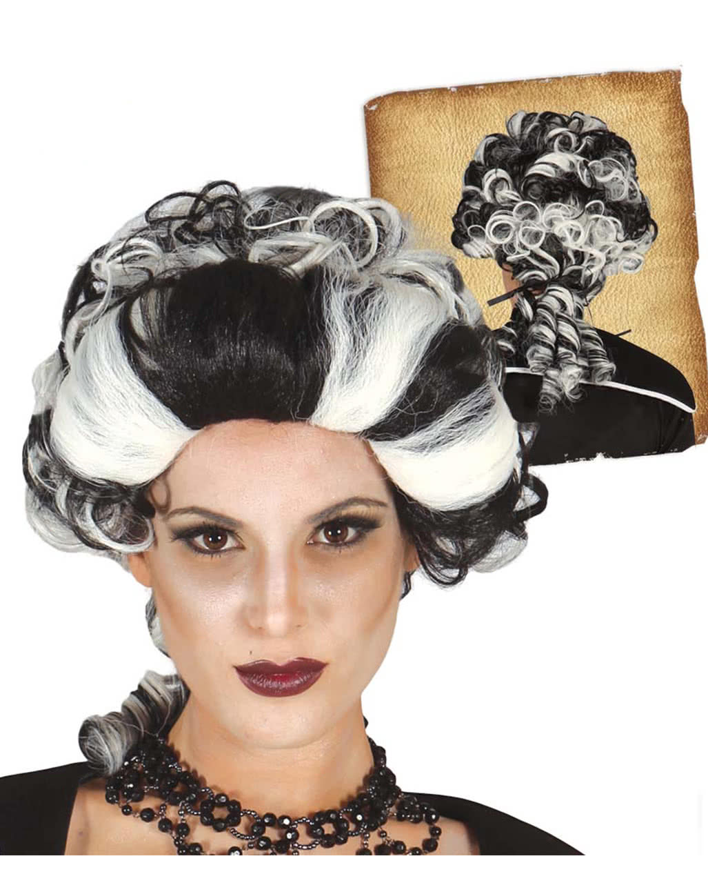 Gothic Vampir Braut Perucke Schwarz Weiss Gunstige Faschings Accessoires Zubehor Bei Karneval Megastore