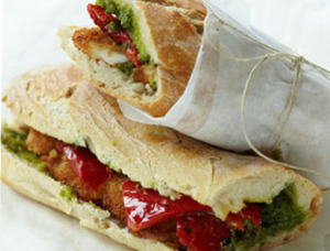 Chicken Cutlet Baguette With Roasted Peppers Pesto Recipe Goop