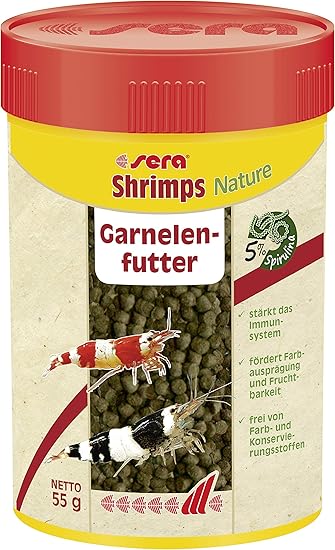 Sera Shrimps Nature 100 Ml Das Granulat Mit U A Spirunlina Und Erlenzapfen Fur Garnelen Im Suss Meerwasser Aquarium Garnelenfutter Amazon De Haustier