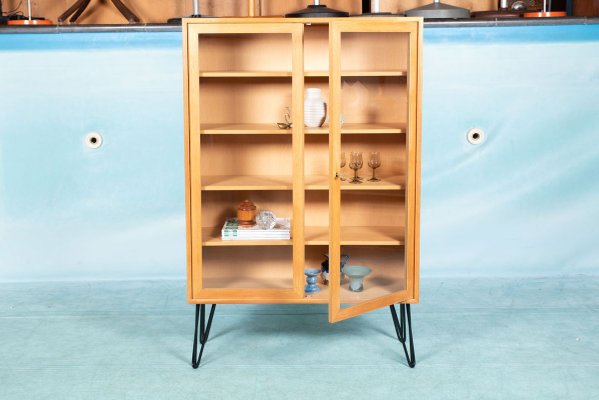 Vintage Glass Cabinet With Oak Hairpin Legs From Wk Mobel 1960s For Sale At Pamono
