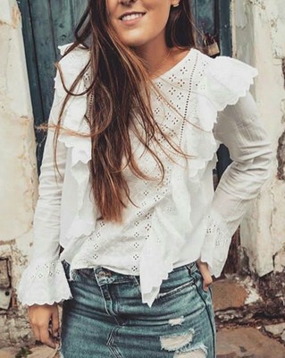 Zara Camicia Ricamo Volant Buco Ricamato Embroidered Frilled Blouse Ebay