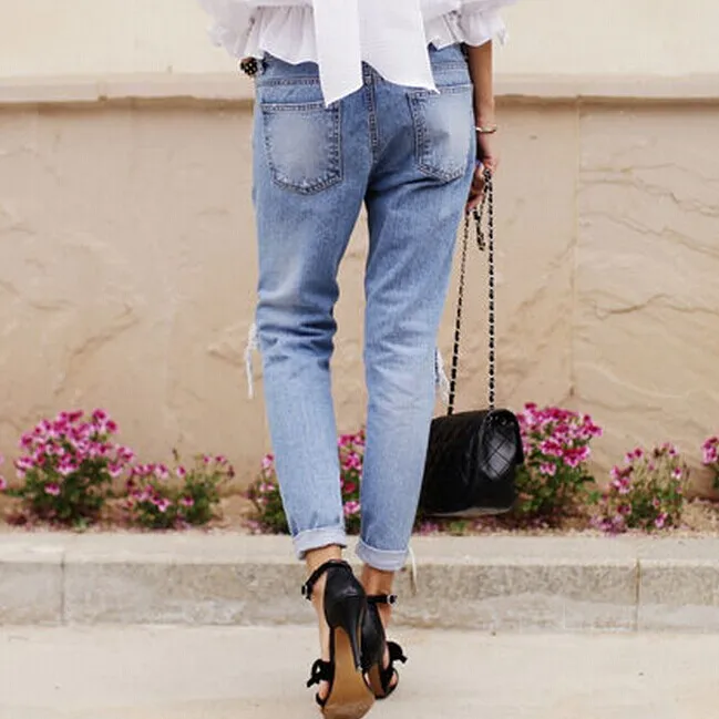 Boyfriend Womens Jeans Low Ripped Girlfriend High Waist Pants Ripped H13 Ebay
