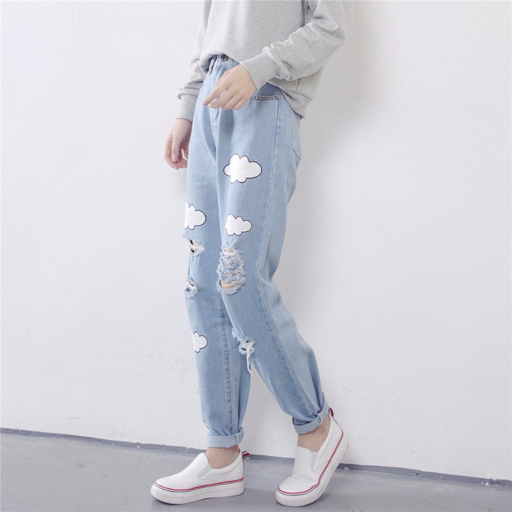 15 Fashion Jeans Women Vintage Holes Knee Ripped Jeans Denim Blue Trousers Female Retro Denim Women Baggy Boyfriend Jeans Jeans Cover Jean Menjeans Outerwear Aliexpress