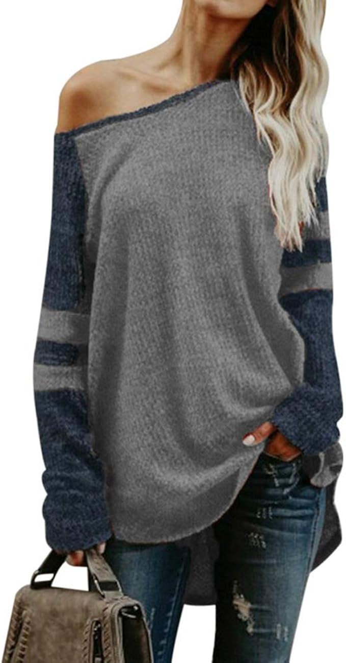 Osyard Online Sale Pullover Sweatshirt Damen Mode Frauen Skew Neck Langarm Tops Kleidung Bluse Gestreift Patchwork Button Herbst Winter Freizeit Strickpullover Sweater Cardigan Amazon De Bekleidung