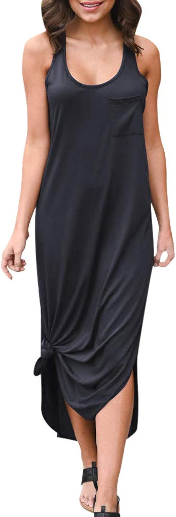 Kolila Damen Unregelmassige Seitenschlitz Ruckenfrei Langes Kleid Einfarbig Armellos Tank Weste Lassig Maxi Kleider Mit Tasche Amazon De Bekleidung