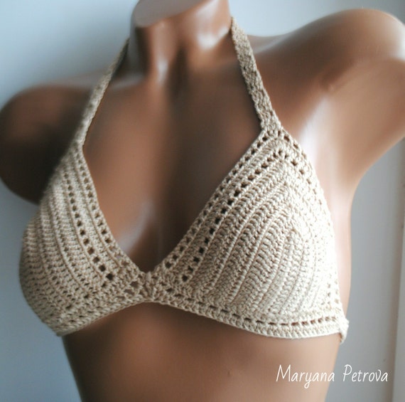Crochet Bikini Top Crochet Top Crochet Bikini Beige Top Etsy
