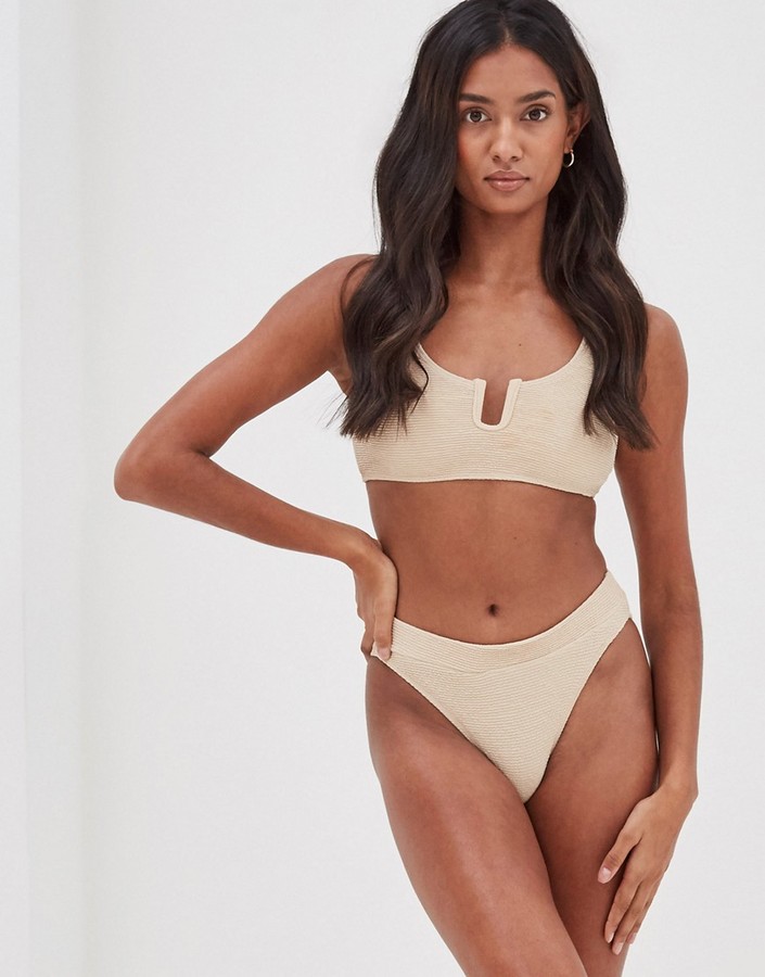 Zulu Zephyr Ribbed Underwired Bikini Top In Beige Asos