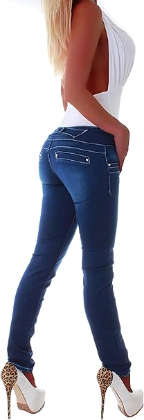 Style Station Damen Skinny Jeans Dunkelblau Jeans Hose Low Waist Ohne Reissverschluss Knopfe Stretch D31 Xxs 32 L 40 Amazon De Bekleidung