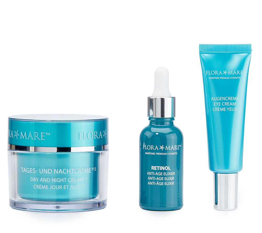 Flora Mare 24h Creme 100ml Augencreme 30ml Retinol Anti Age Elixier 30ml Qvc De
