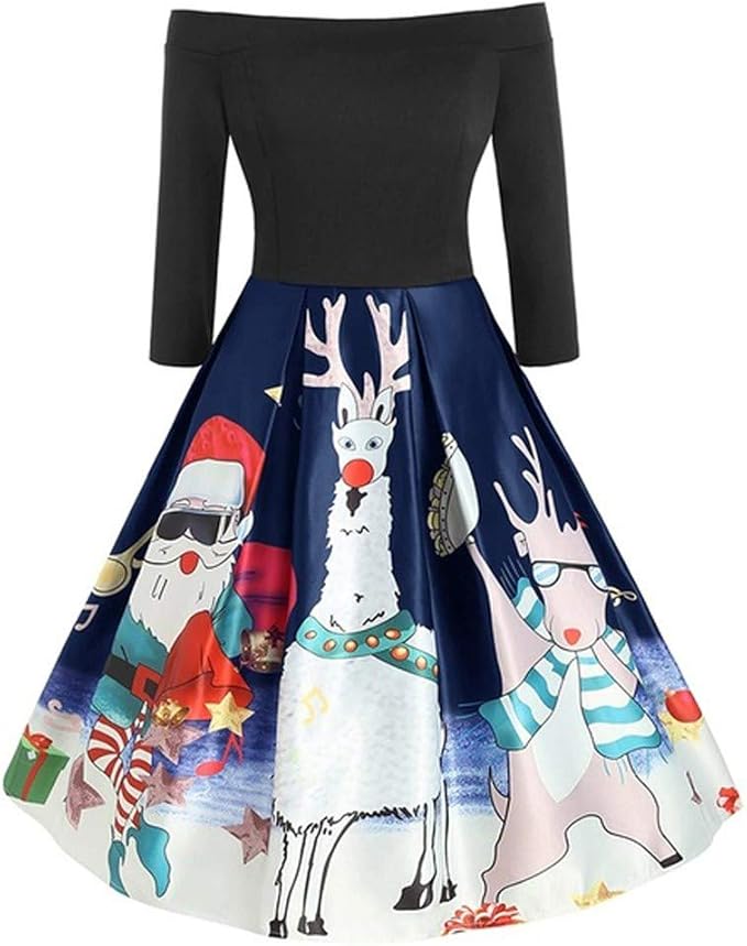 Lopily Weihnachtskleid Damen Abendkleider Schulterfrei Grosse Grossen Mit Lustig Santa Claus Rudolph Druck Off Shoulder Weihnachten Cocktailkleid Gr 48 46 Ausgestellte Weihnachtskleider Amazon De Bekleidung