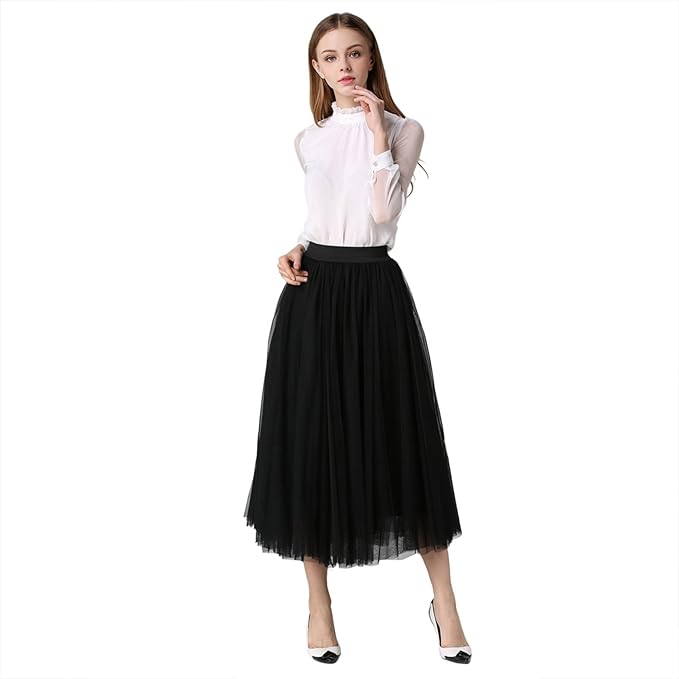 Homedecoam Damen Tullrock Falten Rock Hohe Taille Organza A Line Lang Rocke Schwarz Amazon De Bekleidung