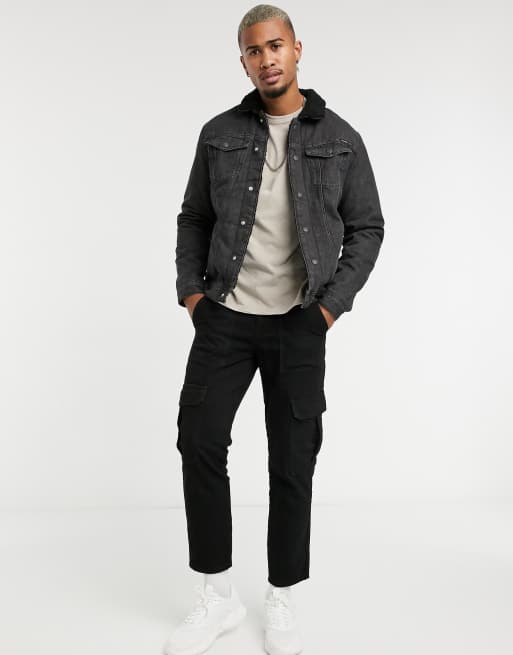 Jack Jones Intelligence Jeansjacke Mit Borgfutter In Schwarz Evesham Nj