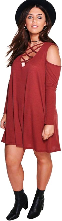 Damen Zimt Plus Aliza Geripptes Ausgestelltes Kleid Mit Ausgeschnittenen Schultern 22 Amazon De Bekleidung