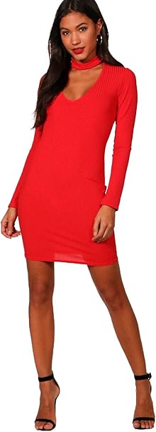Feuerrot Damen Ita Hochgeschlossenes Geripptes Bodyconkleid Mit Tiefem Ausschnitt 12 Amazon De Bekleidung