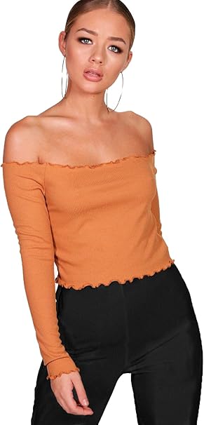 Damen Toffee Ruby Geripptes Bauchfreies Top Mit Gerafftem Saum 10 Amazon De Bekleidung