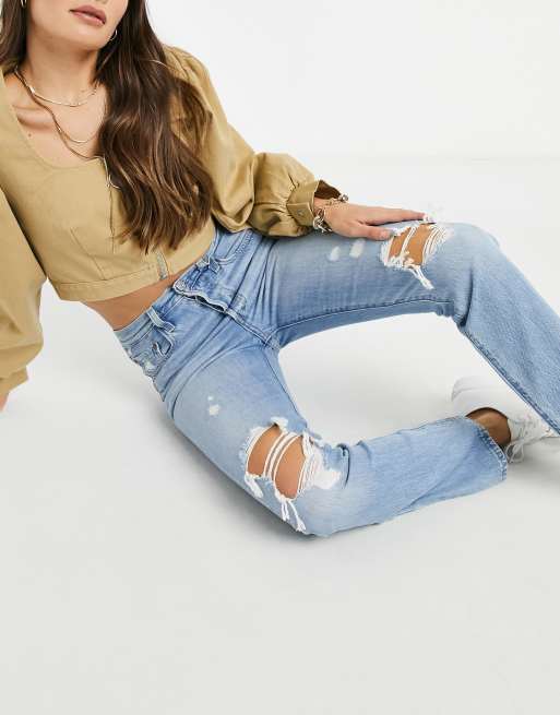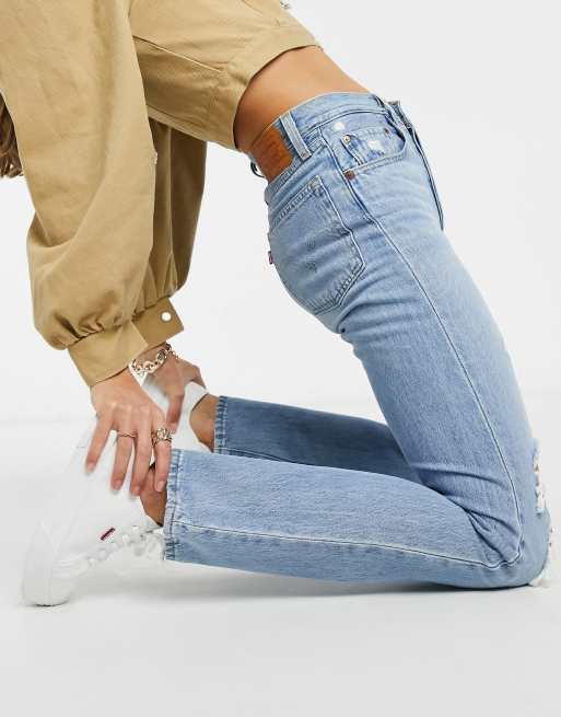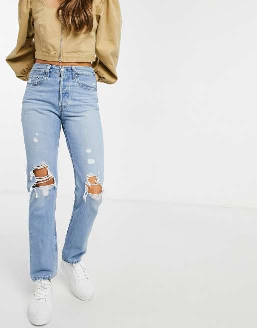 Levi S 501 Jeans Kurzer Schnitt Mit Rissen In Verwaschenem Mittelblau Asos