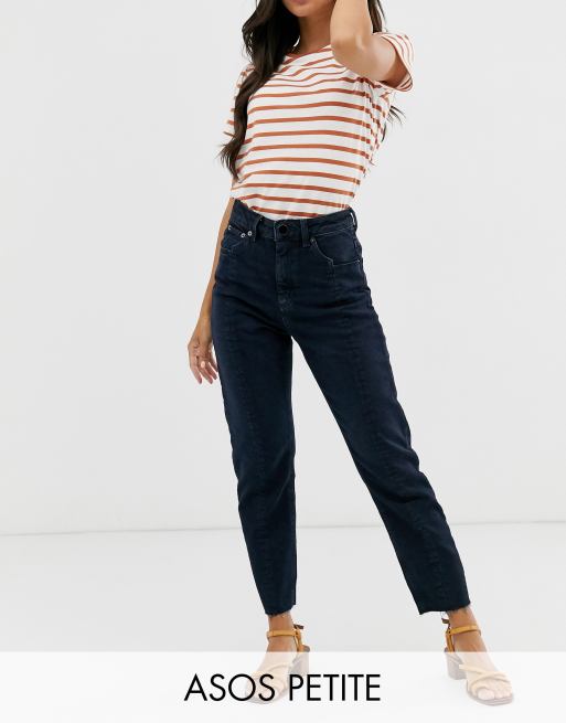 Asos Design Petite Recycled Farleigh Schmale Mom Jeans Mit Hohem Bund Und Saumdetail Vorn In Verwaschenem Dunkelblau Asos