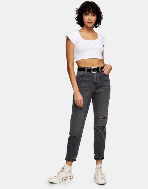 Topshop Mom Jeans Mit Rissen In Verwaschenem Schwarz Org