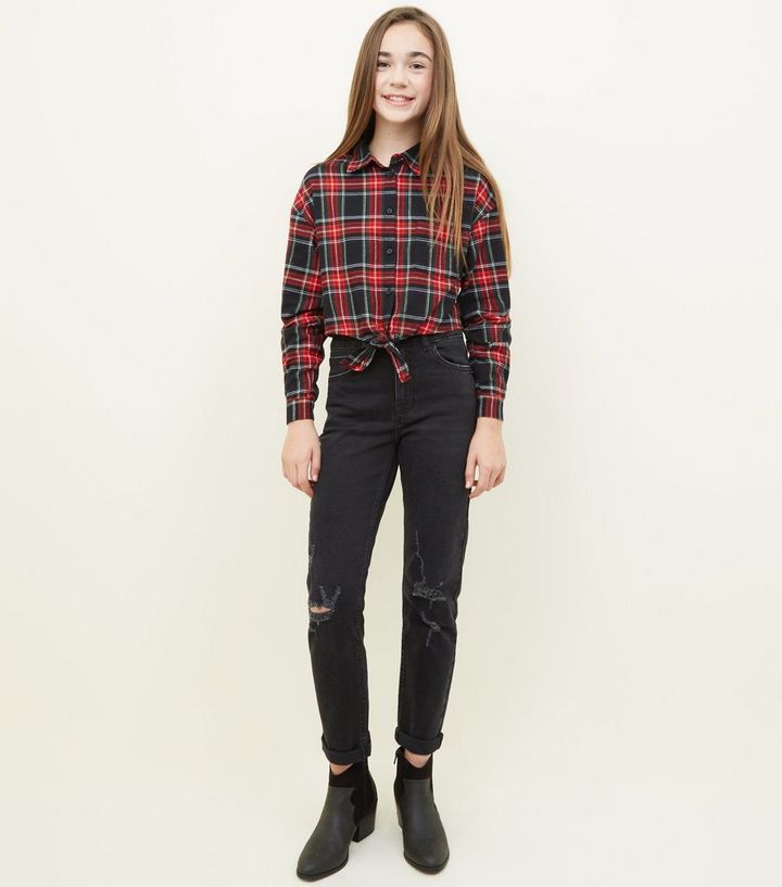 Girls Zerrissene Mom Jeans In Schwarz Mit Stretch Anteil New Look
