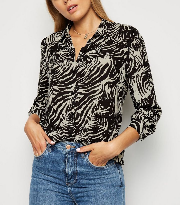 Tall Schwarzes Hemd Mit Zebramuster New Look