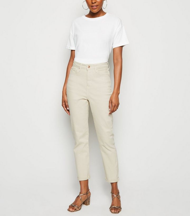 Tori Schmale Mom Jeans Mit Taillenbetonung In Gedecktem Weiss New Look