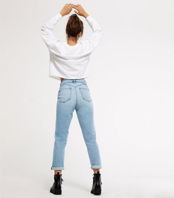 Tori Zartblaue Mom Jeans Mit Taillenbetonung New Look